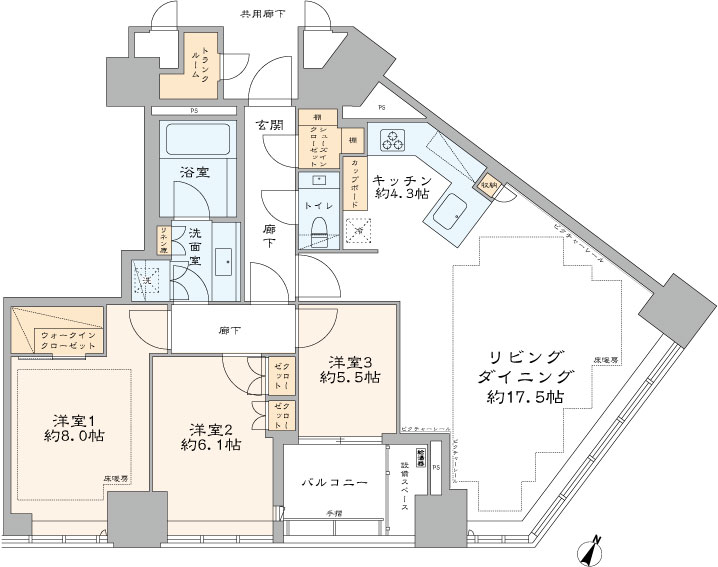 専有面積 95.23 ㎡(壁芯面積)